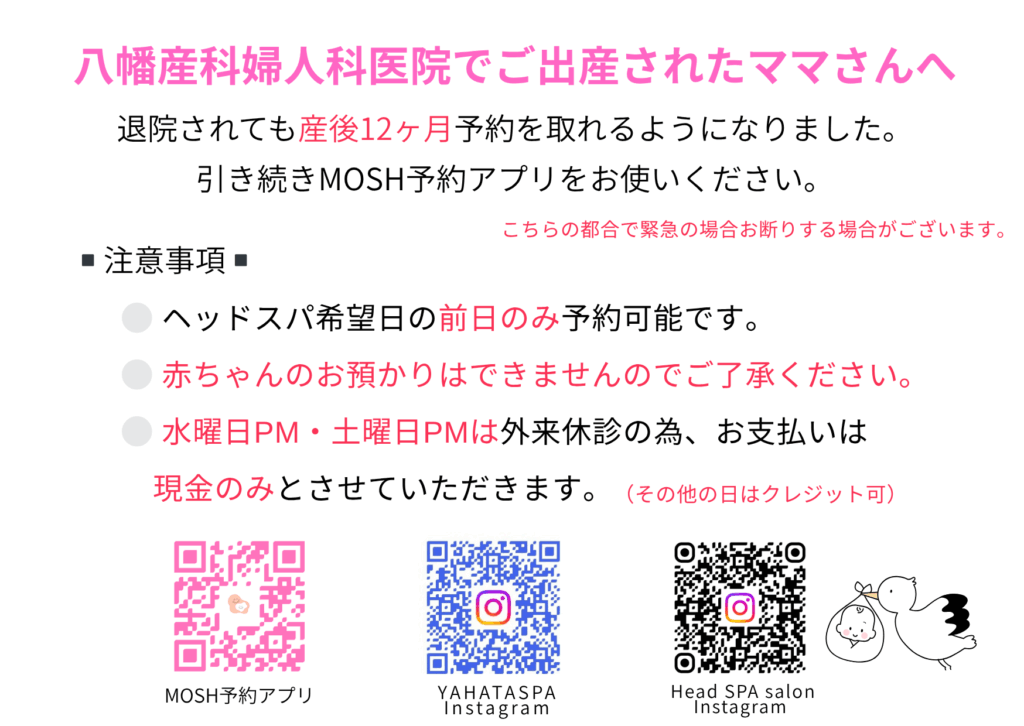 『入院中にもう一度受けたかった!』『退院した後もまた受けたい!』と言う嬉しいお言葉を頂き、退院後も産後12ヶ月間はヘッドスパのご予約が取れるようになりました。赤ちゃんとの新しい毎日で、がんばることが増える時期。